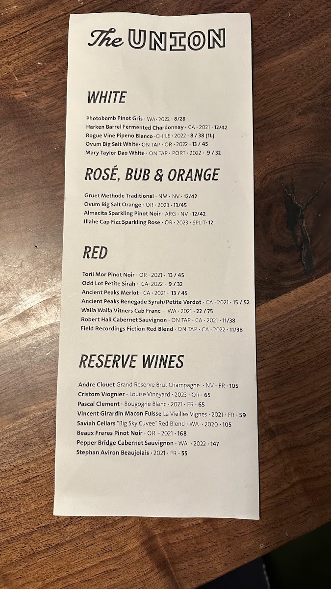 The Union Restaurant | Old Salt Co-op Menu