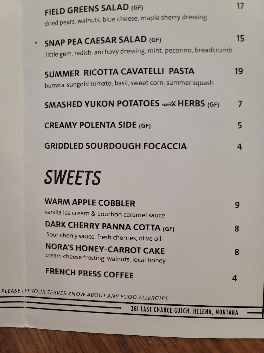 Lunch and dinner bring a variety of well-rounded choices—from warming dishes like Shepherd’s Pie and Dry Aged Meatballs served over creamy polenta, to vibrant salads featuring snap peas or chicory Caesar. The menu also highlights expertly grilled steaks, such as flank and sirloin, prepared over a wood fire grill to complement the warm, welcoming atmosphere of the restaurant.